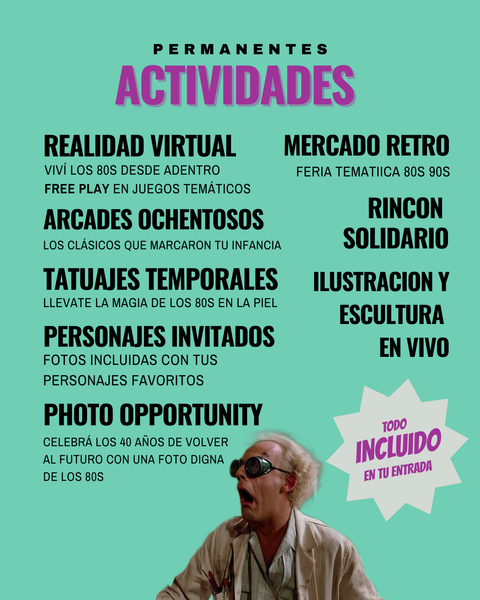 • Photo Opportunity: celebrá los 40 años de Volver al Futuro con una foto digna de los 80s. ¡Una parada obligada para todos los viajeros del tiempo!